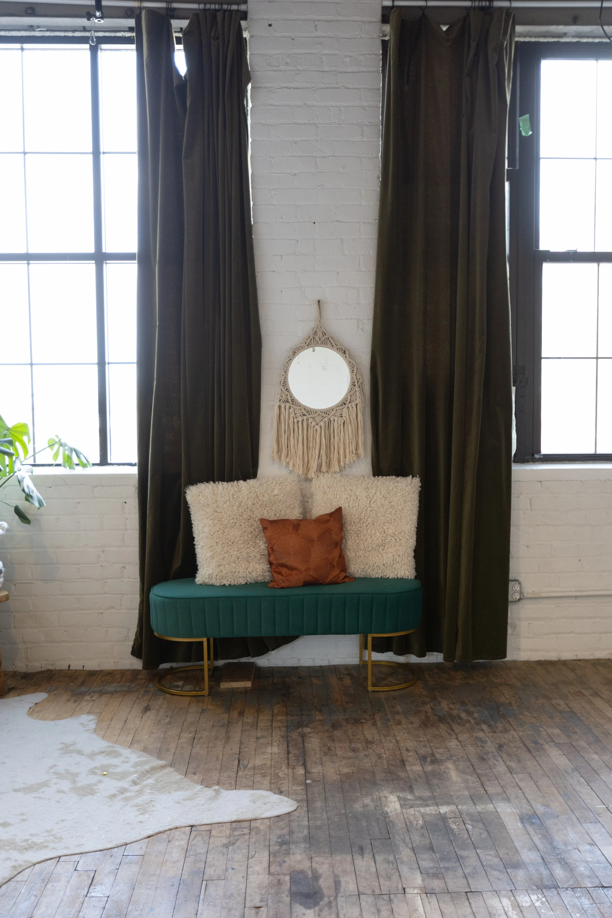 Starseed Studios is nestled within the historic Architectural Antiques in NE Minneapolis. The studio features a rustic distressed wood floors, exposed wooden beams, and white brick walls. Bask in the beautiful even natural light through north-facing windows or take control of your ambiance with blackout curtains. Light stands are available for use. And hey, the creative vibes don't stop within the studio—explore the public spaces around the building.